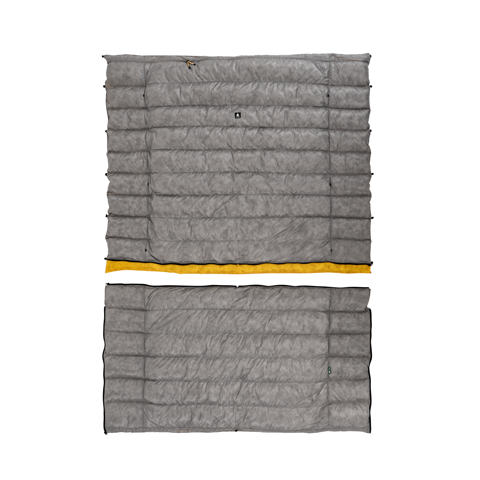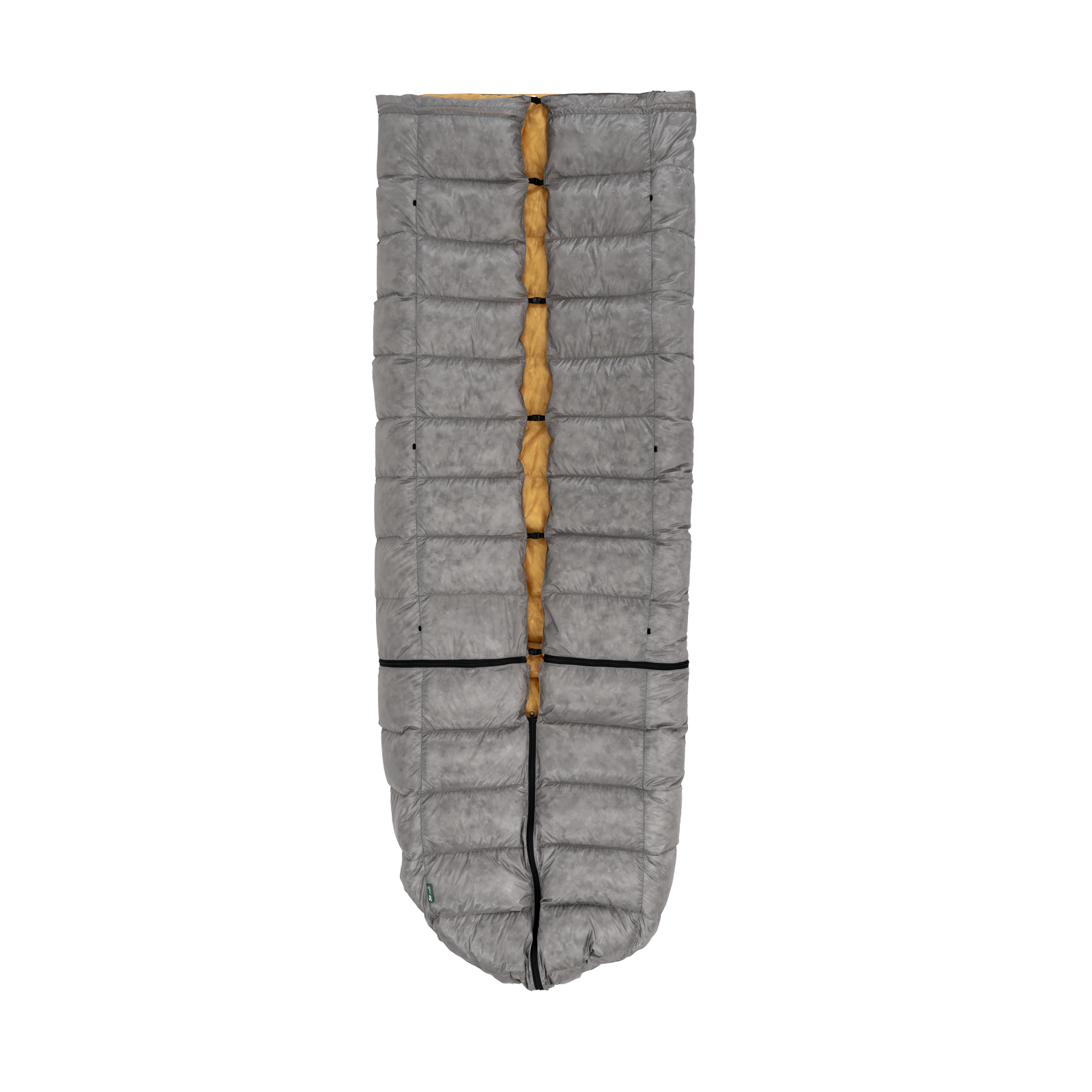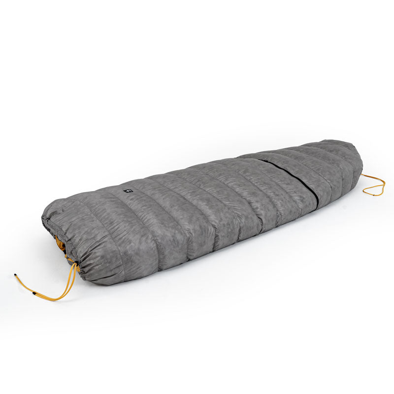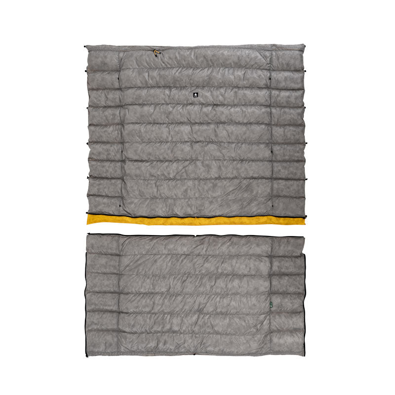 足元のジッパーを開けることで、ダウンキルトをスリーピングバッグとして使用可能です。低温環境にも対応できます。