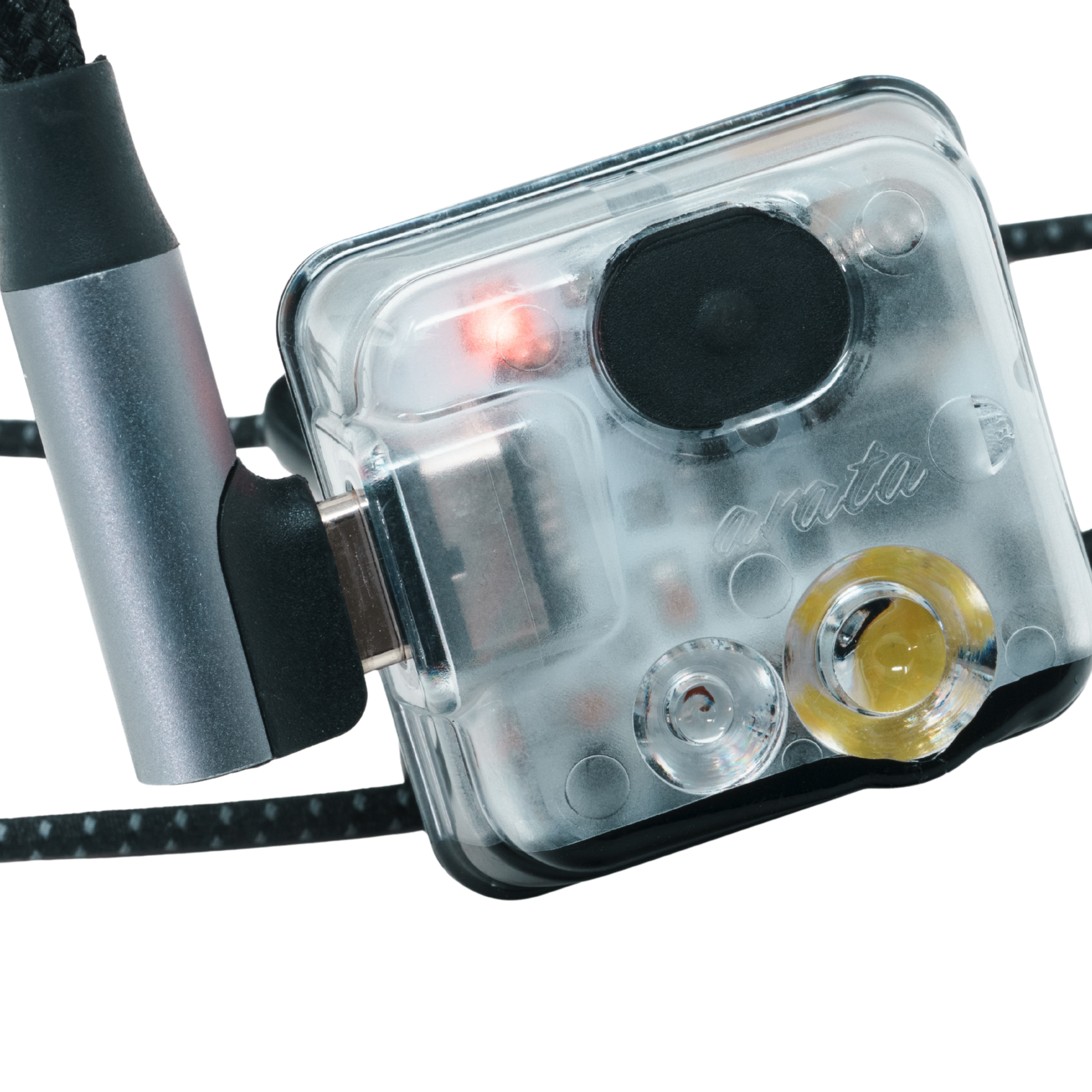 arataが設計した完全独自回路を採用することで、本体重量19g、バンドを入れた総重量でも23.5gという超軽量さを実現しました。どんなアクティビティでも重量を感じさせず、十分な明るさを提供します。